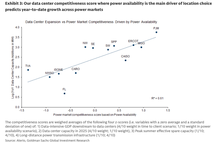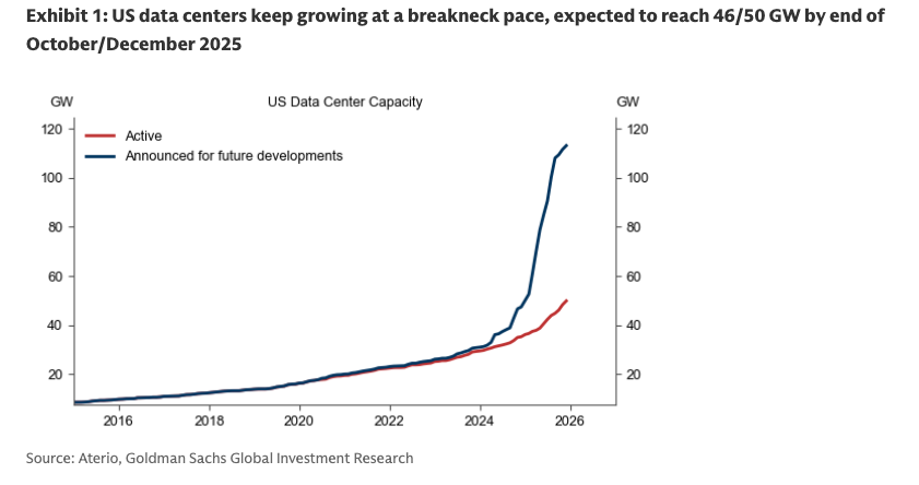 Goldman analysts, led by Hongcen Wei, cited new current project schedules from Aterio data that showed US data center capacity is projected to reach 46 GW by October 2025, marking a 37% year-over-year increase. He found that most of this increase comes from incumbent markets